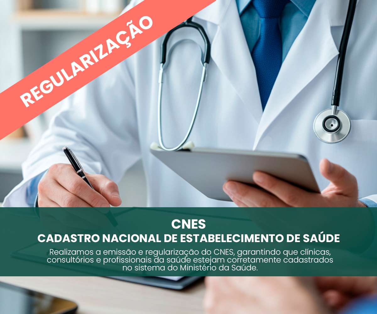 O CNES (Cadastro Nacional de Estabelecimentos de Saúde) é o cadastro obrigatório junto ao Ministério da Saúde para estabelecimentos que prestam serviços na área da saúde. Ele registra estrutura física, equipamentos, profissionais e serviços oferecidos, permitindo controle regulatório e integração com sistemas públicos de saúde. É indispensável para funcionamento regular de clínicas, consultórios, hospitais e serviços assistenciais, além de ser exigido para emissão de outras licenças e contratos com operadoras ou órgãos públicos.